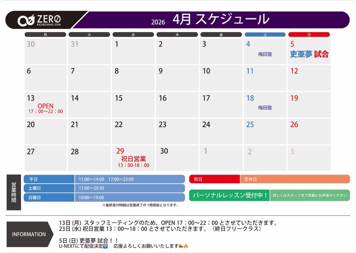 新年度がスタートし、当ジムも新体制での営業が始まりました!